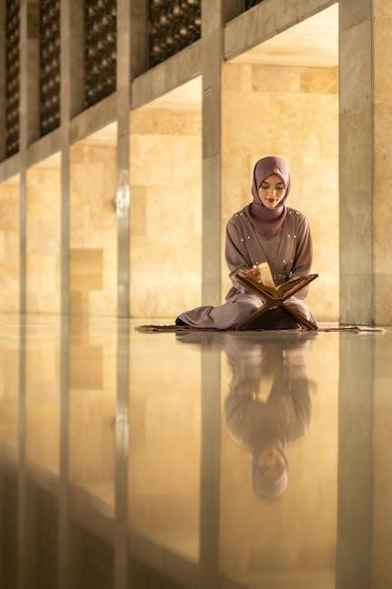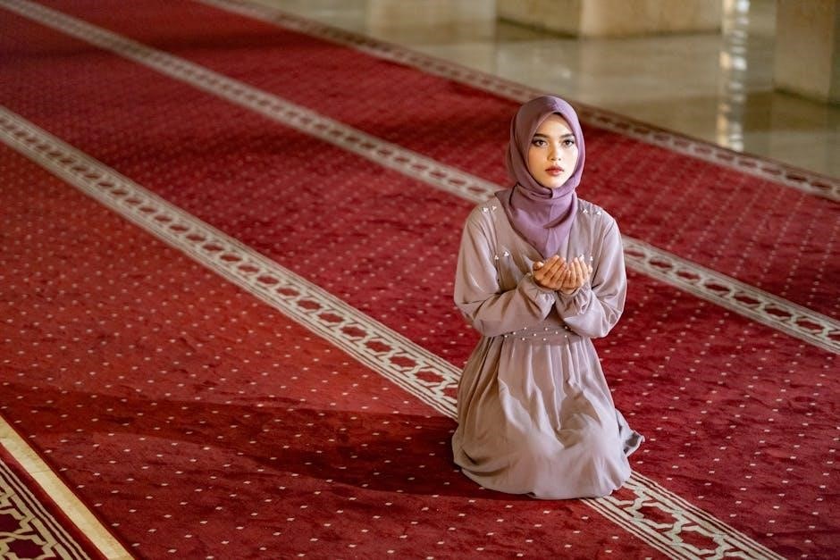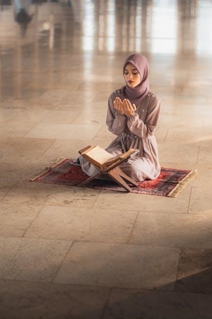 Purification, both physical and intentional, is essential before prayer. Resources like beginner’s PDF guides detail Taharah, ensuring readiness to connect with Allah.