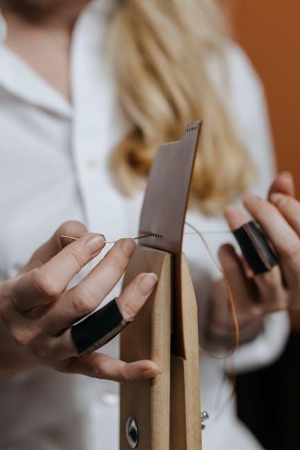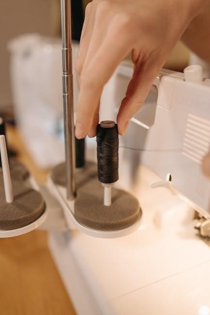 Threading involves guiding the thread from the spool, through various guides, the tension discs, and finally, the needle. The manual illustrates the correct path, crucial for proper stitch formation. Incorrect threading leads to issues like skipped stitches or thread breakage. Always refer to your specific model’s diagram for accurate guidance, ensuring smooth and reliable sewing performance.